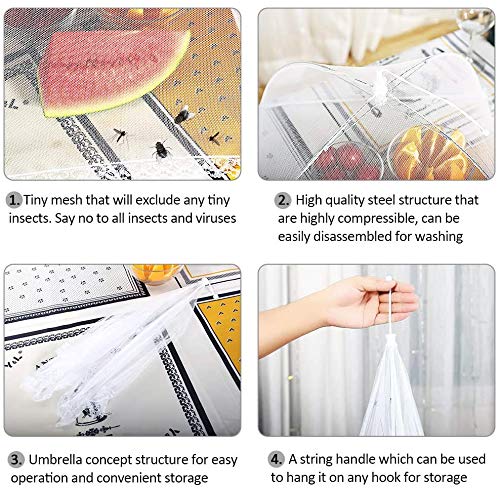 ▶ Alta qualità: Fodere per alimenti pop-up a rete ad alta densità, con maglia in rete fitta, nessun insetto possa penetrare.Struttura in acciaio inossidabile di qualità superiore. Offre un supporto robusto.È molto durevole e riutilizzabile. In fondo c'è anche un grazioso nastro che protegge meglio i cibi e le bevande dagli animali nocivi.