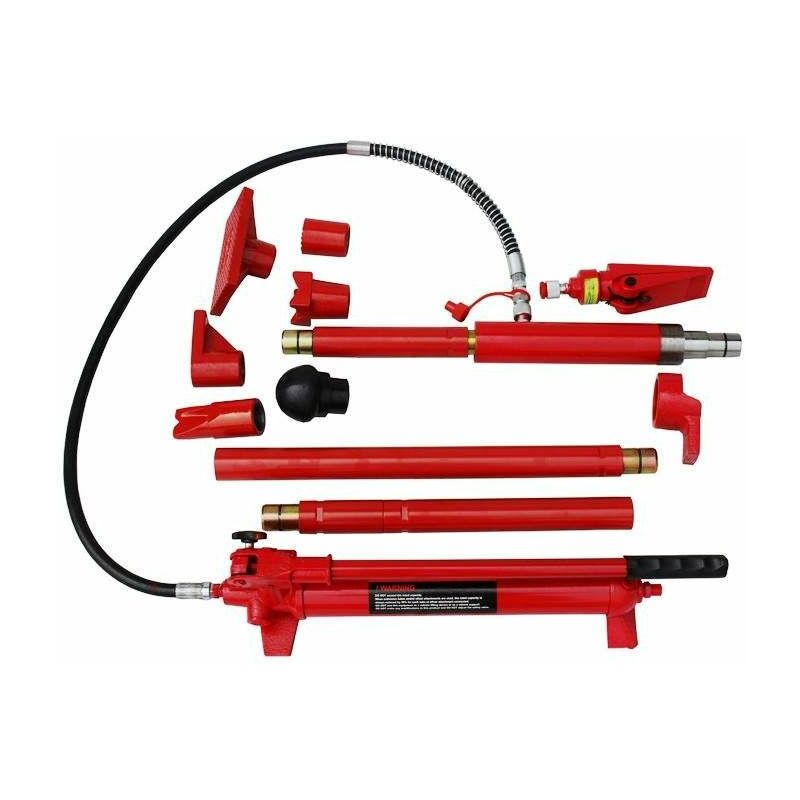 Questo prodotto sarà utile per tutti i lavori di carrozzeria. La forza di compressione e di trazione è di 10 T. Contenuto: Martinetto idraulico con tubo ad alta pressione e raccordo rapido. Piastra di supporto Zeppa Supporto prismatico 1 tenditore per i cilindri e pistoni Filettatura Cuscino di gomma 1 tubo di prolunga di 580/458/250/125/76 mm circa. Dispositivo a espansione con raccordo rapido Un perno di accoppiamento con filettatura interna e filettatura esterna Coperture protettive Connettori Spinotto a scatto Scatola di plastica stabile. Fornito con valigetta di trasporto Consigli: Non superare la pressione supportata dal telaio Assicurati che il punto di pressione sia ben centrato e stabile Dati tecnici: Carico massimo: 10 T Altezza massima di sollevamento: 135 mm Altezza minima del cilindro: 390 mm Pressione di utilizzo 62 Mpa Quantità d'olio nel pistone: 500 g circa Peso netto: 28 kg Dimensioni dell'imballaggio: 73 x 40 x 18 cm