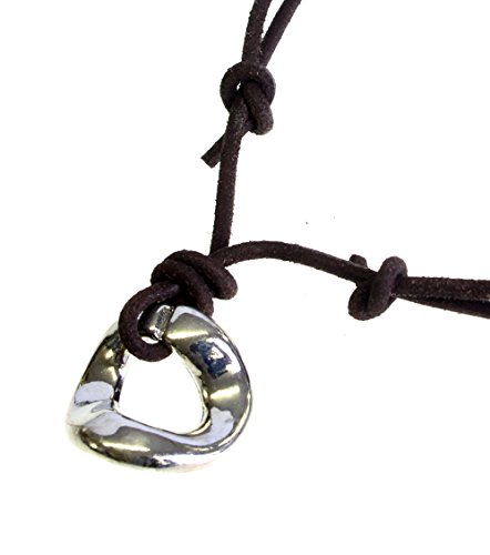 Spazzolato ciondolo color argento, che misura circa tre centimetri di diametro.