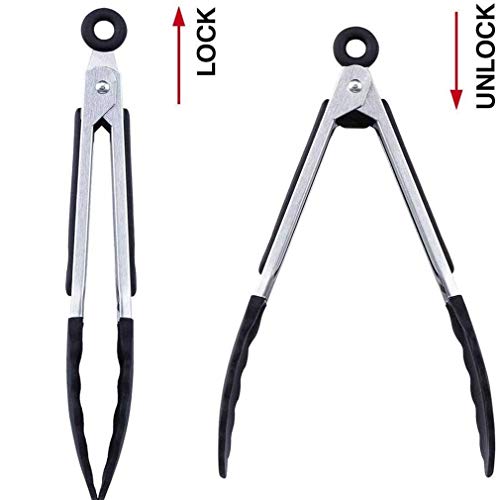 12 "/Nero - -Pinze da Cucina Antiscivolo Utensile Pratico Resistente al Calore Presa Facile per Cucinare, servire, Barbecue, Buffet, Insalata, Ghiaccio, Forno