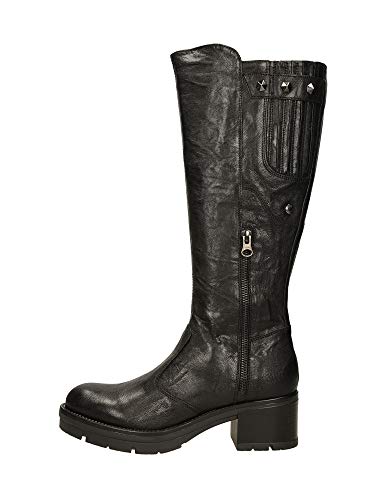 NeroGiardini A909623D Monaco Nero Stivali Donna con Tacco Basso Pelle Martellata Lampo (Taglia 39)
