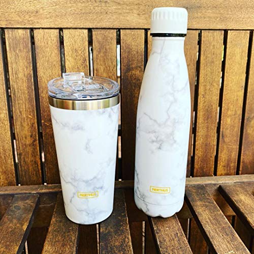 NERTHUS FIH 597 597-Thermos a Doppia Parete per Freddo e Caldo. Design Marmo di Acciaio Inossidabile 500 ml. Senza BPA. Tappo ermetico
