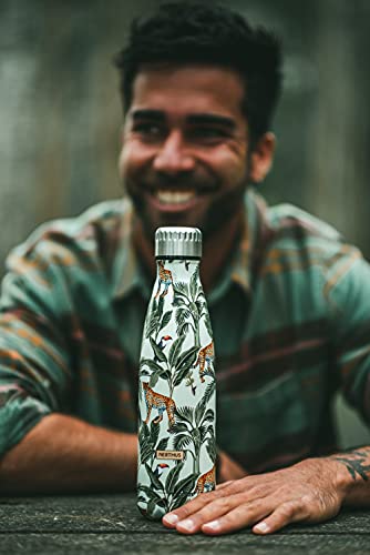 NERTHUS FIH 769-Thermos con Tappo a Doppia Parete, per Freddi e Caldi, Design a Giungla, Inox, Senza BPA, 18/8, Multicolore, Acciaio Inossidabile, 750 ML