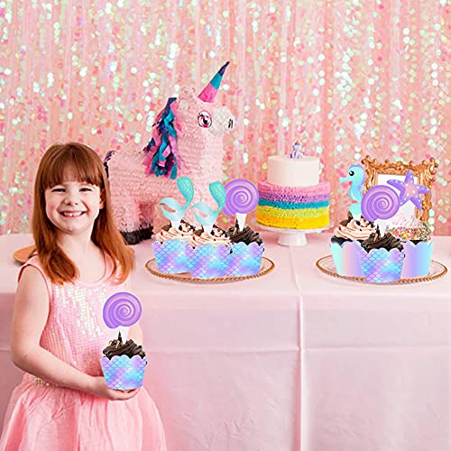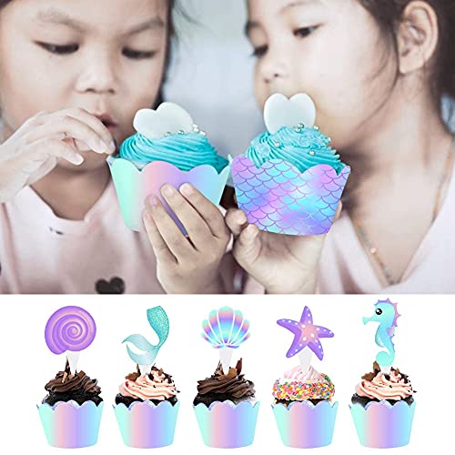 Design unico: i luminosi involucri di cupcake a sirena e varie decorazioni per torte con creature sottomarine decorano i cupcakes e i muffin per renderli più attraenti e sorprendere i bambini e gli ospiti.