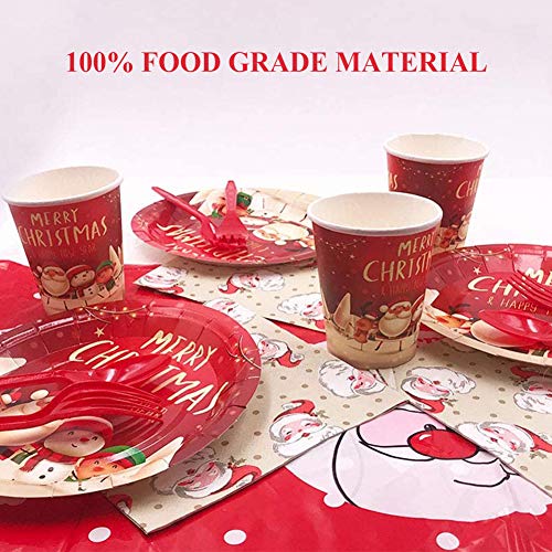Nesloonp 68 PCS Feste di Natale Articoli per la tavola di Compleanno, Include Piatti di Carta, tovaglioli,Bicchiere di Carta, Feste Natalizie a Tema Natalizio