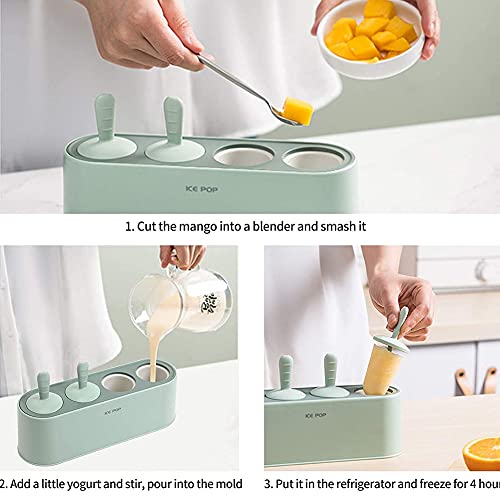Nesloonp Ghiaccioli Stampo, 4 Griglie Stampi per Ghiaccioli in Silicone, Stampini Ghiaccioli, Formine Ghiaccioli Riutilizzabili, per la DIY Preparazione di ghiaccioli, Gelati, sorbetti (Verde)