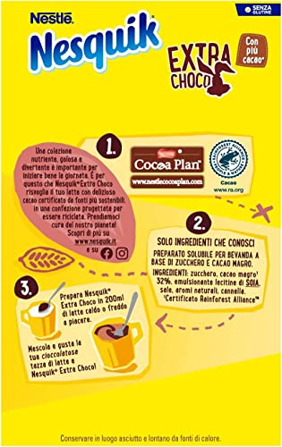 Nesquik Extra Choco è ideale per essere gustato a colazione, a metà pomeriggio o come coccola della sera. Nella sua unica confezione in latta da 390g, Nesquik Extra Choco è perfetto da bere sia caldo che freddo.