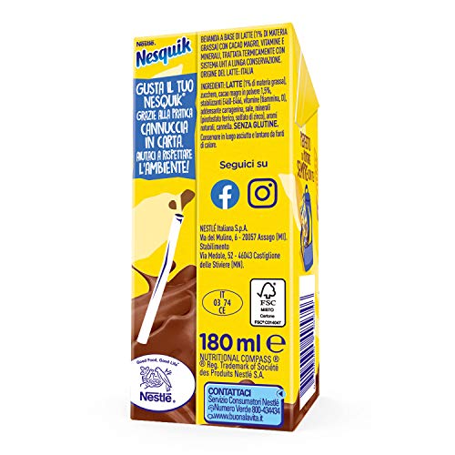 NESQUIK READY TO DRINK Bevanda a Base di Latte con Cacao Magro 8 Confezioni da 3x180ml
