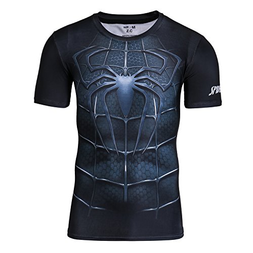 Nessfit Maglietta a compressione da uomo, a maniche corte, da corsa, termica, per allenamento, Supereroe 15, S