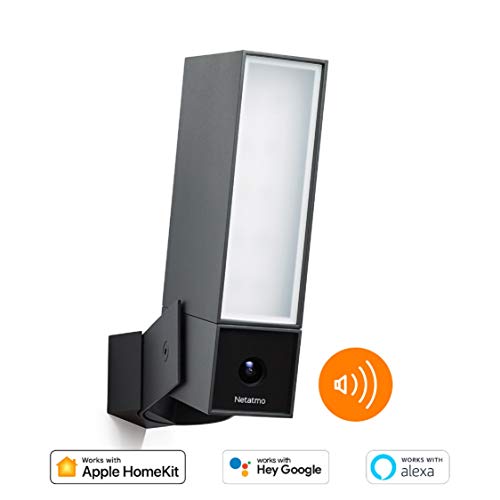 Netatmo Telecamera di Sorveglianza WIFI Esterna Intelligente con Sirena 105 dB, Faretto integrato, Rilevamento Movimenti, Visione Notturna, Nessun costo aggiuntivo, NOC-S-IB