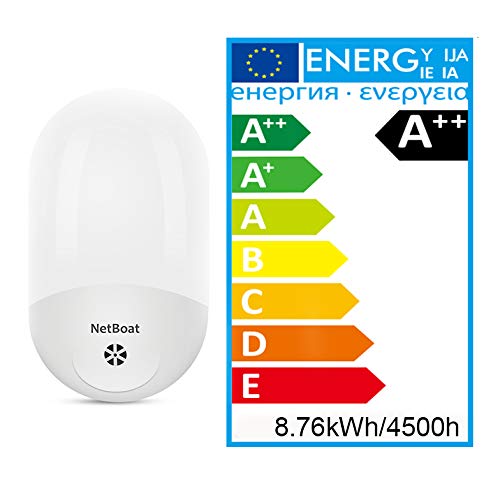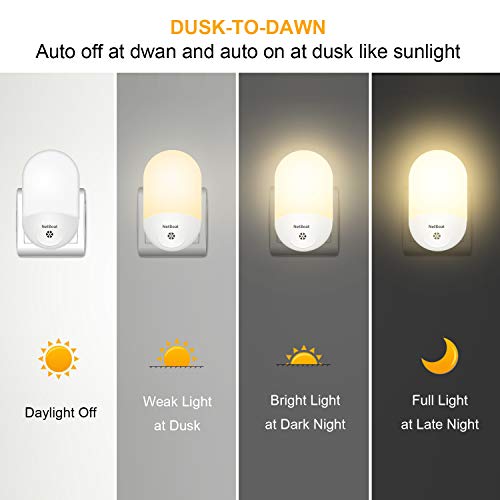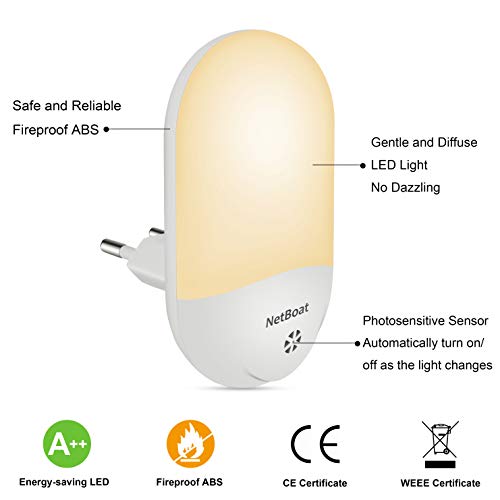 NetBoat Presa Luce Notturna con Sensore Crepuscolare, LED Luce Bianca Calda Luce Notturna per Baby, Automatico on/off Lampada a Risparmio Energetico per Bambini Camera Corridoio da Letto Scale Bagno