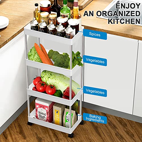 NETEL Carrello portaoggetti a 4 Ripiani Carrello Scorrevole con ruote e Carrello portaoggetti Mobile salvaspazio per Cucina, Bagno, Lavanderia, Camera da Letto, spazi Stretti, plastica, Bianco