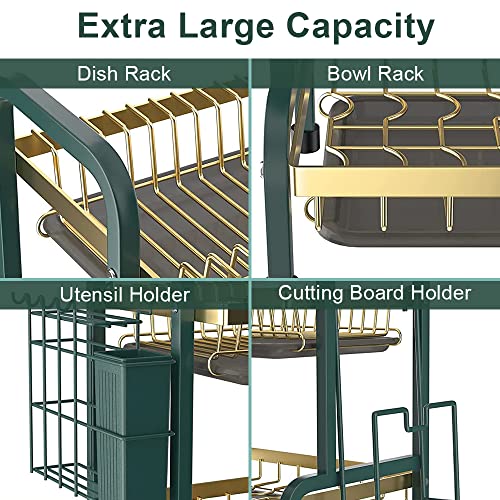 ➤[Look lussuoso]: gli scaffali per stoviglie sono laccati in oro brillante e verde retrò al posto del solito nero o argento, il che è più elegante e lussuoso. In questo modo la capacità di archiviazione rimane la stessa rispetto a prodotti simili