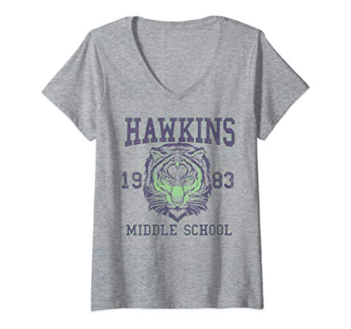 Netflix Stranger Things Hawkins Middle School 1983 Tiger Maglietta con Collo a V
