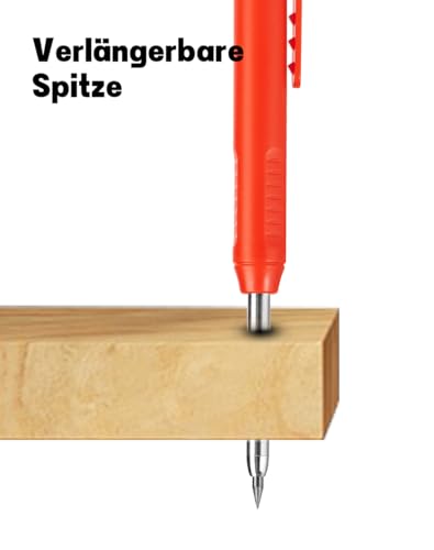 ✏️ PRATICA MATITA DA CARPENTIERE: 2 penne per la marcatura di fori profondi - grazie alla punta lunga 45mm, le penne da carpentiere ssono adatte anche per piccoli fori e rientranze più profonde. Ideali per marcare fori profondi e altre aree strette. 3 matite meccaniche da falegname - ideali per marcature desiderate su vari materiali duri. Le matite sono realizzate in ABS, robusto e durevole che non si rompe. Il corpo della matita è ergonomico e non si affatica dopo un uso prolungato.