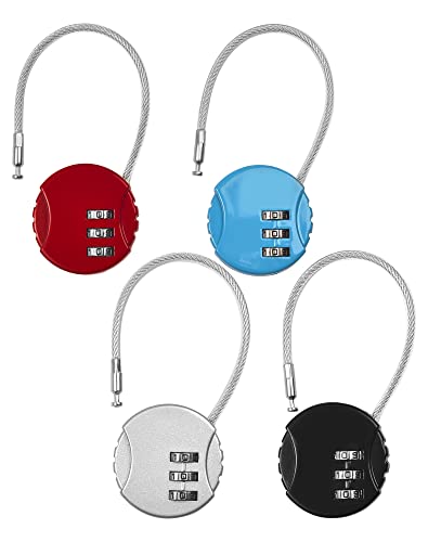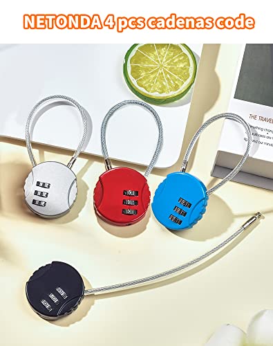 NETONDA 4 Pezzi Lucchetto Combinazione a 3 Cifre Lucchetti per Valigia Aereo Piccoli Lucchetti a Codice Serratura Codificata con Cavo per Borse da Viaggio Bagagli Valigie Armadietti Palestra