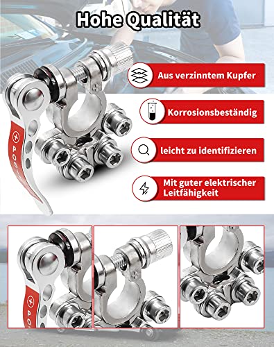 NETONDA 2 Pezzi Morsetti per Batteria a 4 vie Morsetti per Poli Batteria per Auto 12V 24V 48V Morsetti Attacco Batteria in Ottone con Chiusura Rapida per Auto Barca Moto Camion Camper
