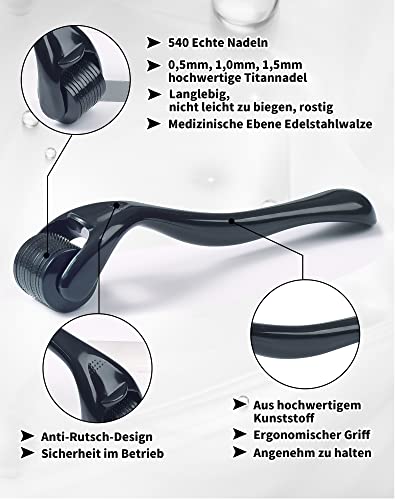 NETONDA Rullo Derma 0,5 mm/1 mm/1,5 mm Derma Roller per Barba con 540 Aghi di Titanio, Dermaroller Micro-Ago Kit 3 in 1 per la Crescita della Barba e dei Capelli Microneedle Rullo per Uomo e Donna
