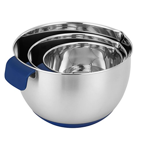 NETTA Set di 3 Ciotole di miscelazione con Manico e beccuccio per versare, marcature Guida di misurazione, impilabili - 1.6L, 3L, 5L