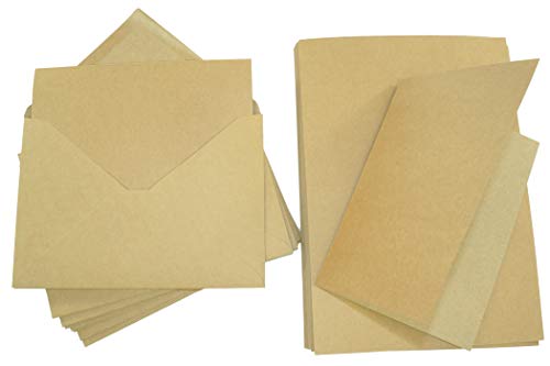 Netuno 25 x biglietti formato A6 in cartoncino Kraft 300 g + 25 buste formato C6 set di biglietti con buste Kraft marroni vintage set per feste matrimonio inviti regali