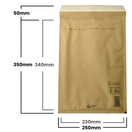 Netuno 50 buste spedizione imbottite marroni G/17 (250x 350 mm) buste spedizioni con bolle aria carta marrone buste per imballaggio con bolle buste pluriball grandi buste imbottite bubble