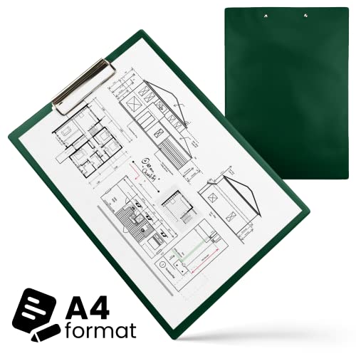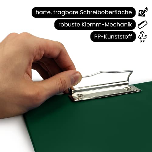 Netuno 1 portablocco formato A4 con clip, colore verde scuro, con morsetto in metallo, in plastica, con clip in formato DIN A4, con morsetto