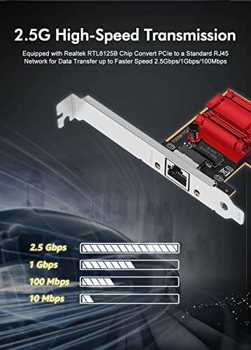 2.5Gb PCIe Network Card, NICGIGA 2.5 Gigabit Ethernet Interface Adapter, with Realtek RTL8125B, Wake on LAN, 2.5G NIC Compliant Windows/Linux/MAC OS