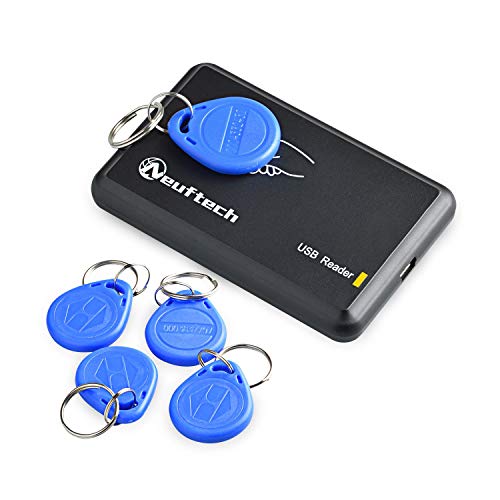Neuftech 2 x USB RFID lettore di schede di identificazione e 5 pz portachiavi schede EM4100 125 KHz