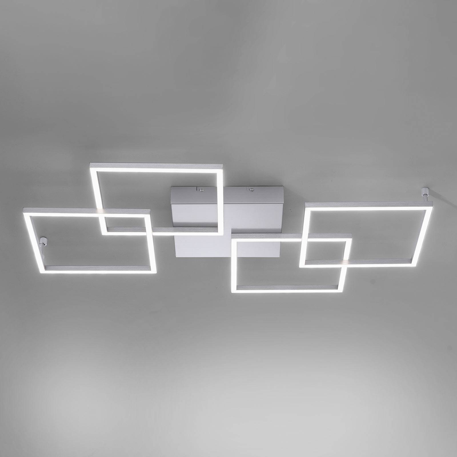 Geometrica plafoniera LED Inigo - dimmerabile con l'interruttore a parete La plafoniera LED Inigo è composta da quattro elementi quadrati che catturano ogni sguardo. Il posizionamento ad incastro vanta infatti un'ottica irresistibile. La classica presenza dell'acciaio aggiunge una nota di spiccata eleganza. La plafoniera possiede quattro punti luce ed offre una pratica funzione simplydim. Questo significa che si può azionare il dimming con il normale interrutore a parete. Non solo, ma la lampada dimmerabile dispone anche di una pratica funzione memory. Chi vuole creare uno scenario suggestivo in casa propria ed anche avere una moderna opera d'arte luminosa, farà certamente una scelta indovinata con la lampada Inigo.