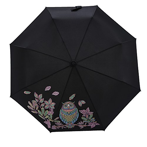 Neuleben, Ombrello pieghevoli Uomo Bambini Donna Nero gufo