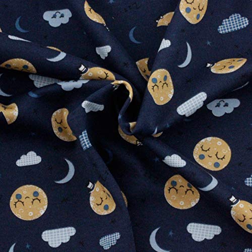 Neumann Handelsvertrieb - Tessuto Jersey Interlock, 100% cotone, tessuto per bambini, larghezza 145 cm, lunghezza 100 cm, luna e nuvole