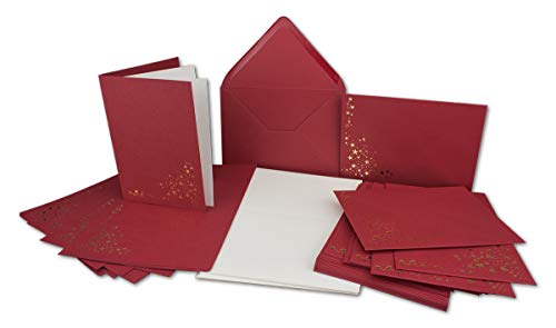 NEUSER FarbenFroh - Set di 25 biglietti pieghevoli in formato DIN A6 con buste formato DIN C6, con inserti in crema, colore: rosso scuro con stelle metallizzate dorate, ideali per biglietti di Natale