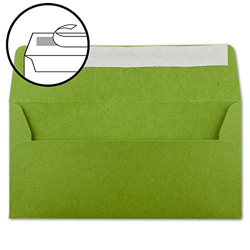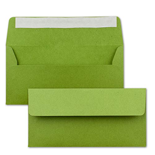 NEUSER PAPIER - 25 buste in carta kraft formato DIN lungo, colore verde chiaro, con chiusura adesiva, vintage, 11 x 22 cm, in carta riciclata