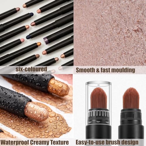 Set of 6 Neutral Double-Ended Makeup Eyeshadow Sticks, Matte e shimmer per occhi e viso, Effetto waterproof a lunga durata, Texture cremosa e scintillante