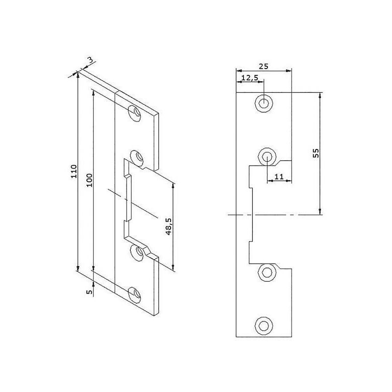 Piastra di chiusura S02X - In acciaio. Inossidabile - Corta - Per il montaggio degli incontri elettrici nel telaio.