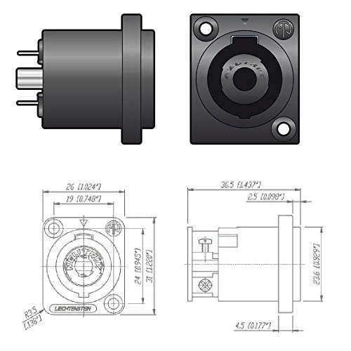 Connettore per chassis Speakon con fissaggio standard "D". Prezzo e venduto ciascuno.