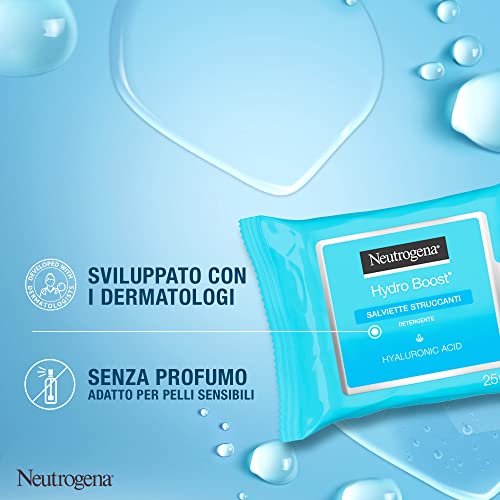 Neutrogena Salviette Struccanti, Hydro Boost, Idratanti, con Acido Ialuronico, Lozione Non Grassa, Confezione da 25 Pezzi
