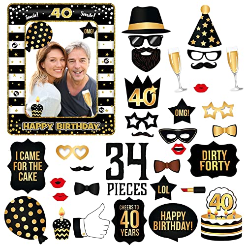 NeuWook Photo Booth Compleanno Accessori, 40 Anni Compleanno Cornice Selfie, Puntelli Fotografia Decorazione per Festa Compleanno Gadget 40 Anni Fai da Te (40 Anni)