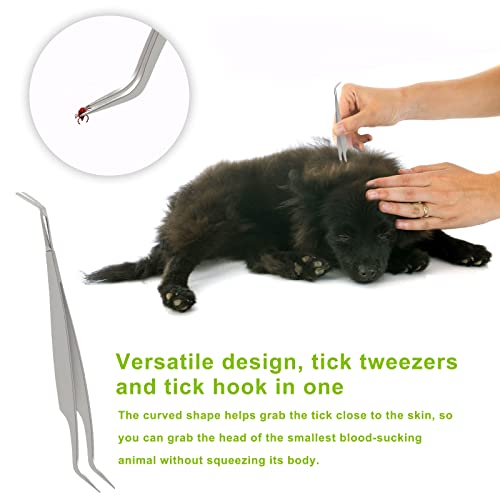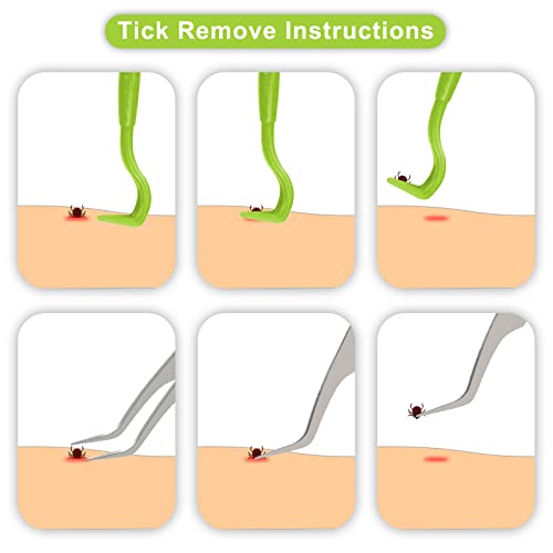 NeuWook Pinzetta per Zecche, Togli Zecche per Cani, Pinzette per Zecche in Acciaio Inox e Gancio per Zecche in Plastica con Scatola per Cani e Gatti Rimuove Facilmente Zecche e Pulci (Verde)