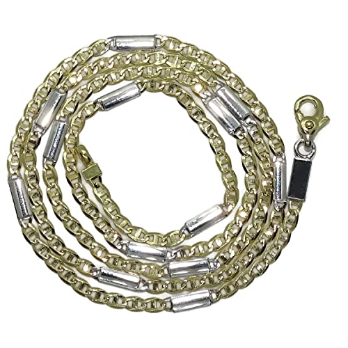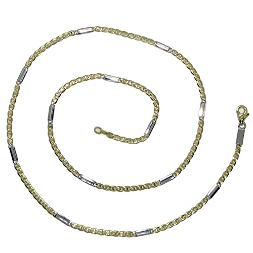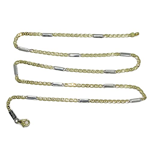 Catena da donna in oro giallo e bianco 18 carati da 50,00 cm combinata con catena ad ancora gialla e barra rettangolare bianca, larga 2 mm. Chiusura a moschettone in oro 18 carati per la massima sicurezza Peso;