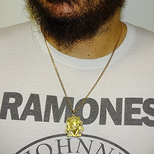 Never Say Never - Cara di Cristo molto grande, in oro giallo 18 k con catena Bilbao massiccio in oro giallo 18 k da 3 mm di larghezza e 60 cm di lunghezza. 31.35 g di oro 18 k