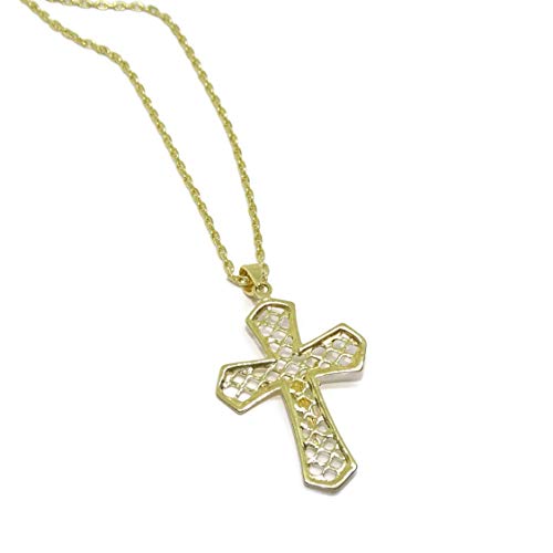 Never Say Never Croce in oro giallo 18 k con Cristo speciale per la Prima Comunione, con catena forzata da 50 cm. Altezza 2,70 cm senza manico