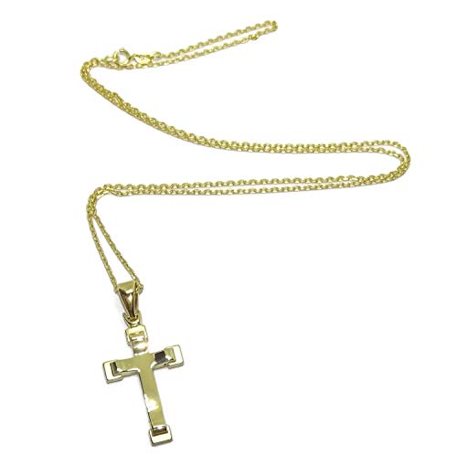 Croce in oro giallo 18k opaco e lucentezza speciale comunione con catena forzata di 50 cm. 3,45 g di oro 18 carati Dimensioni;