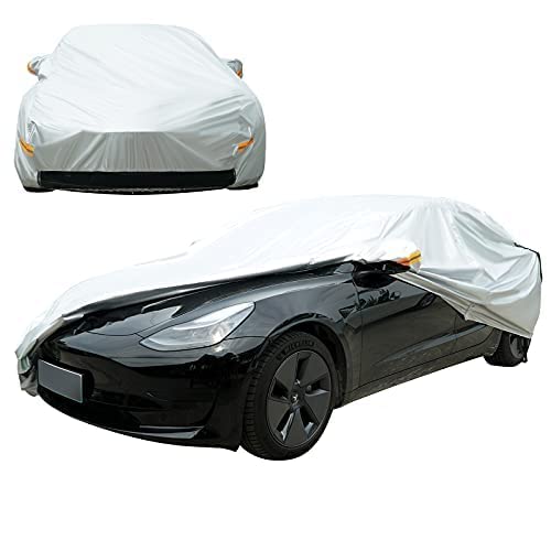 NEVERLAND Copriauto Telo Tesla Model 3 personalizzata Copriauto Auto Impermeabile Telo per Auto Resistente ad Acqua Polvere Neve Sole Freddo Argento