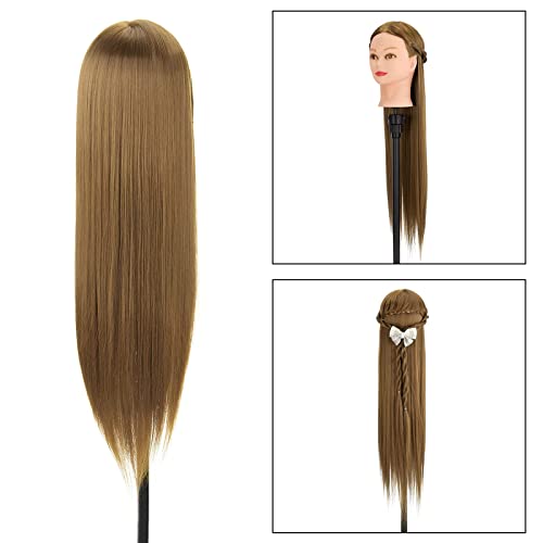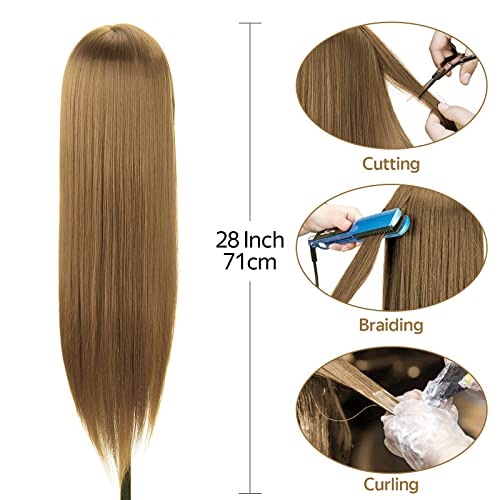 Neverland Testa Studio 28" Testa per Parrucchieri Cosmetologia Formazione Pratica Parrucchiere Manichino Bambola 100% Capelli Sintetici Testina con Morsetto + DIY Accessori per Capelli(oro)