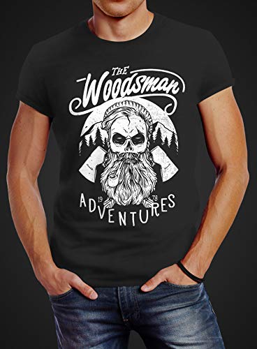 Neverless - Maglietta da uomo Lumberjack Woodsman Hipster Bart Beard Skull Skull Skull Slim Fit