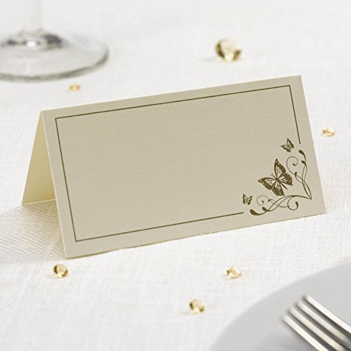 10 splendidi segnaposto dal design elegante e dotato di farfalle dorate su sfondo crisp avorio