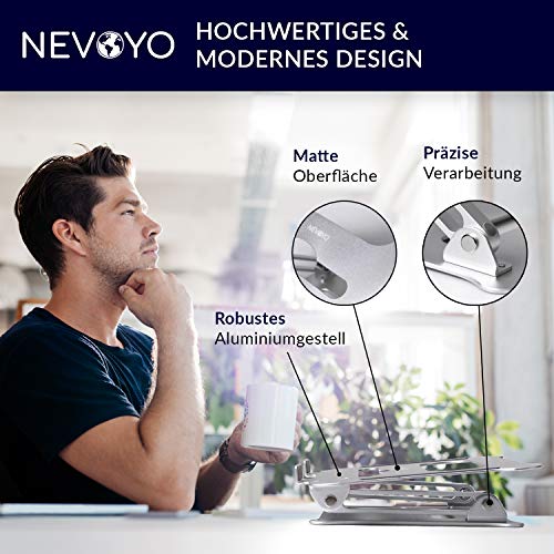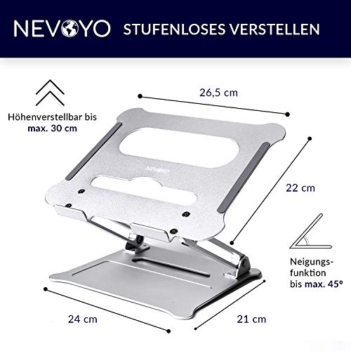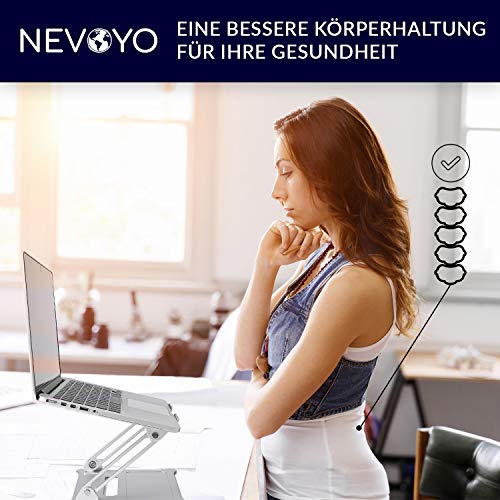 NEVOYO - Supporto per laptop (regolabile in altezza con prese d'aria), con custodia inclusa, compatibile con MacBook, HP, Dell & Co. (fino a 17,3 pollici)