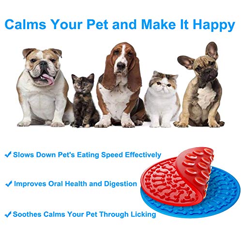 New-wish Dog Lick Pad,Ciotola Cani Mangiare Lento,Tappeto Rotondo in Silicone per Cani con Ventosa, Dispositivo di distrazione per Lavare Il Cane in Modo Facile e Divertente (Blu)