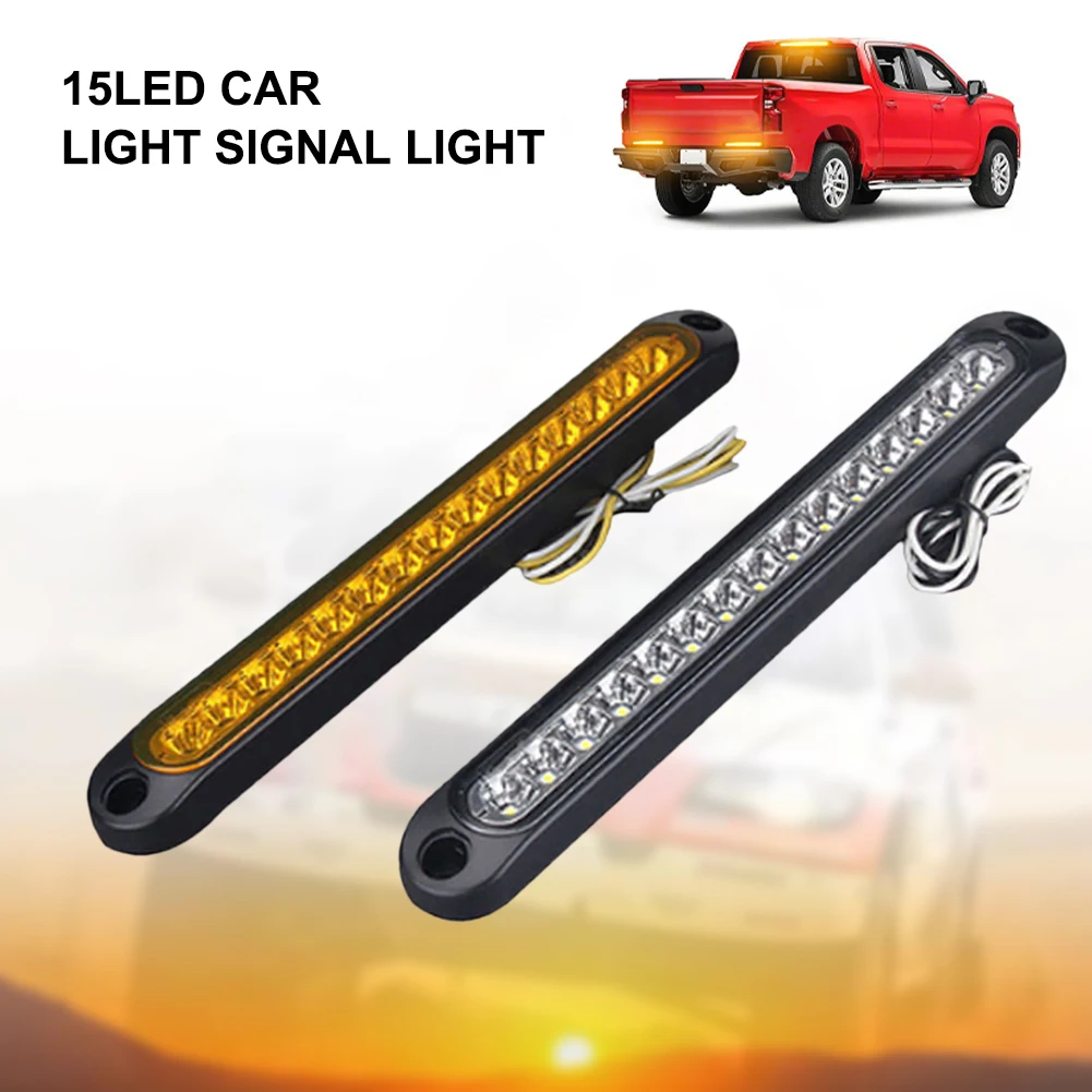 New2Pcs LED Taillight 12-30V High Mount Stop Lamp 15LED Third Brake Light Amber Car Truck Light Bar Brake Turn Signal Stop Light
